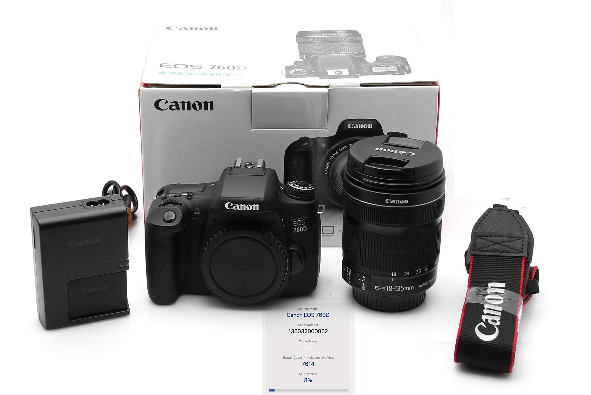 Used Canon 760D Camera with 18-135mm STM Lens + Original Charger + Original Battery + Shoulder strap with Complete Box