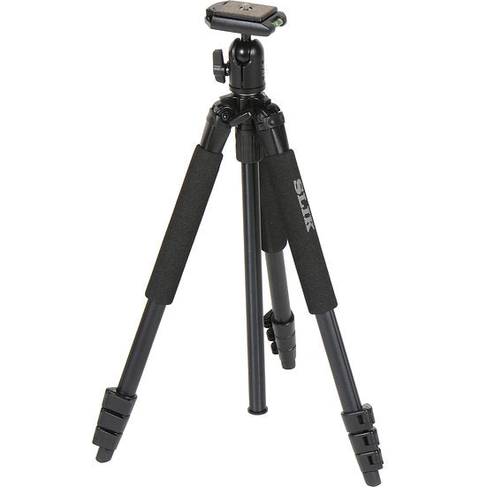 The Sprint 150 Aluminum Tripod with SBH-150DQ Ball Head from Slik is a compact camera support that can hold up to 4.5 lb and weighs just 2.3 lb. It extends from a minimum height of 7.4" to a maximum height of 64", and folds down to 19.9" for storage and transport.