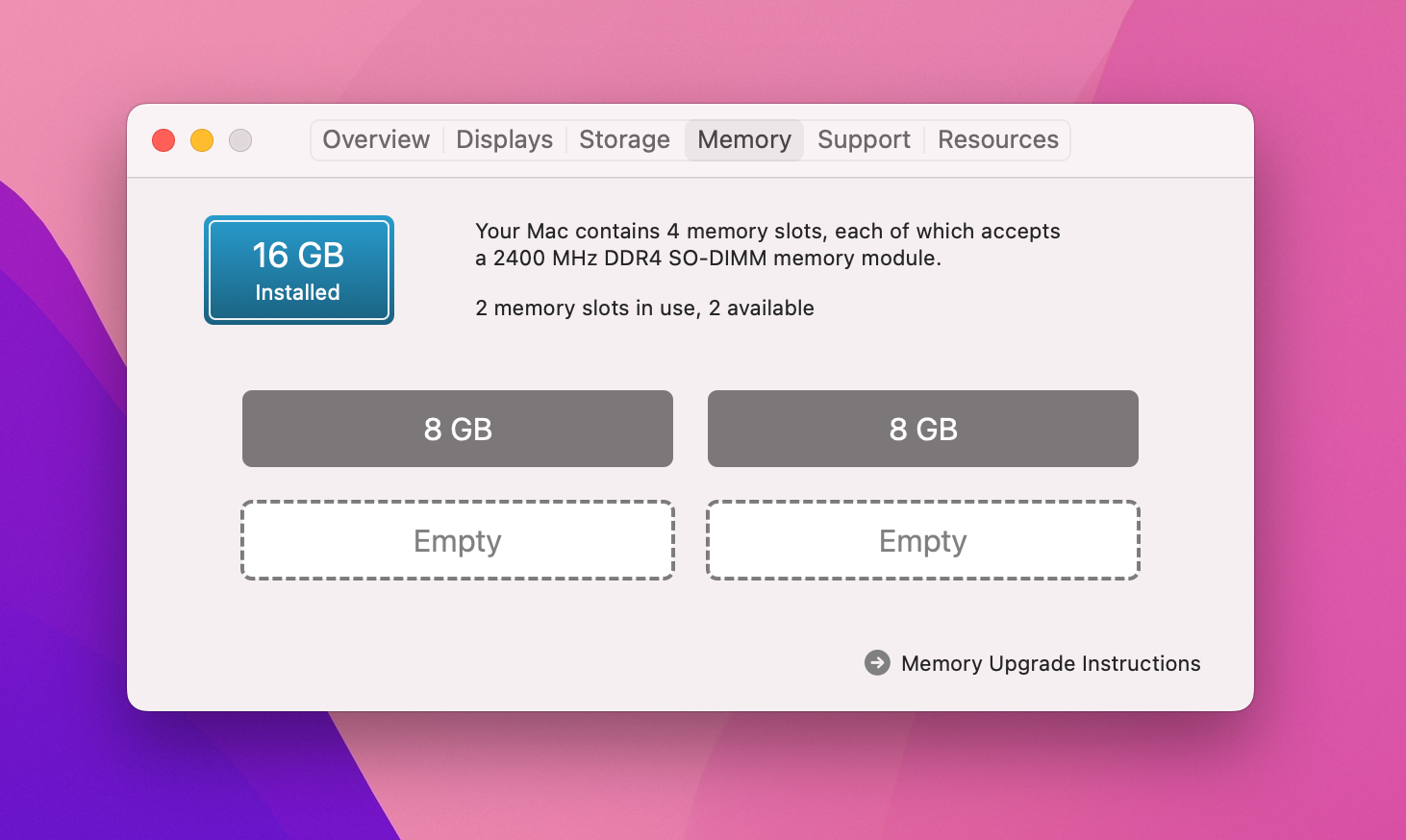 RAM:16GB 2400 MHz DDR 4