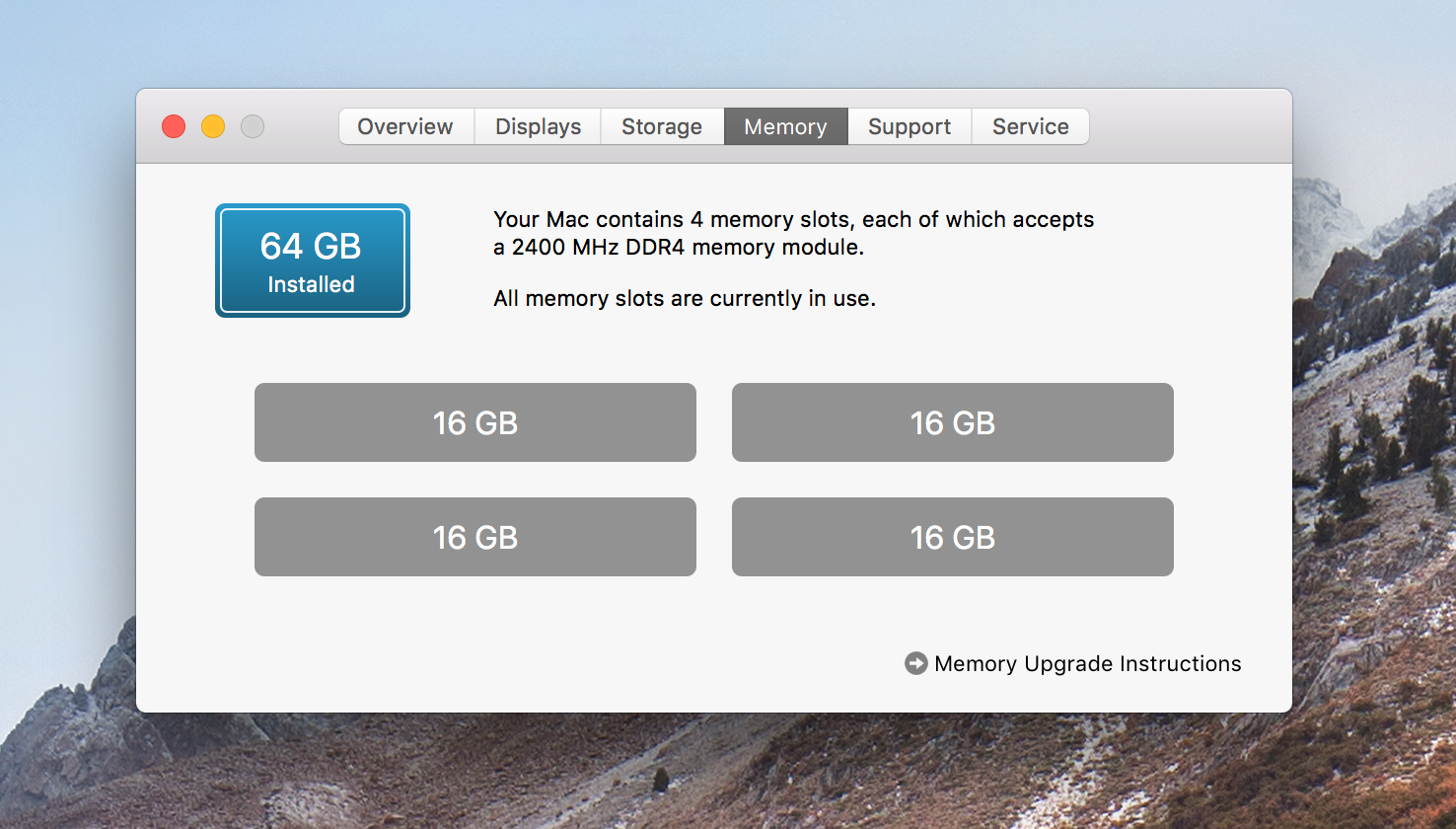 RAM:64 GB 2400 MHz DDR 4
